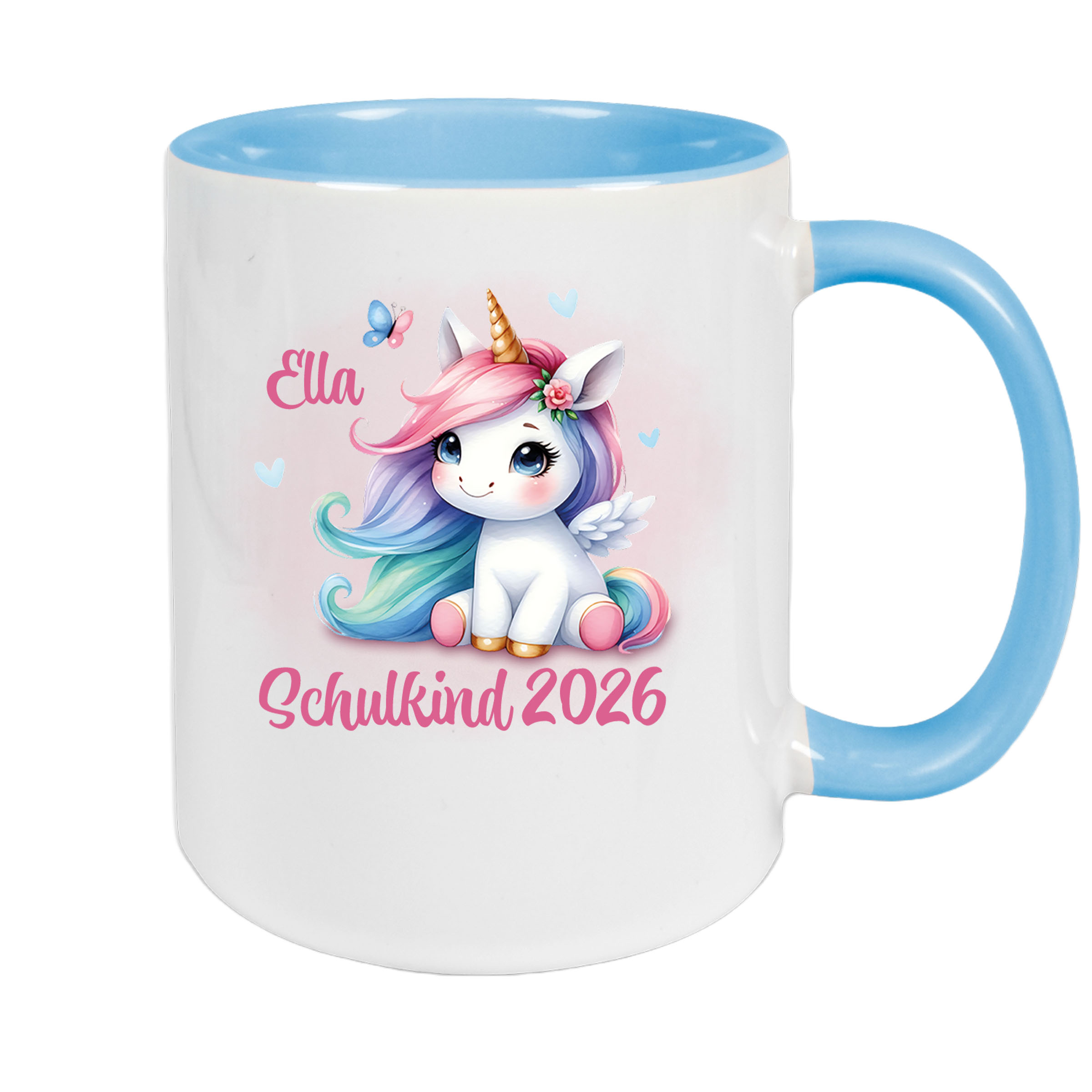 Produktinformationen "Tasse Schulkind 09 Wunschname Einhorn 2 Keramik Kinderbecher Personalisiert versch. Farben"
