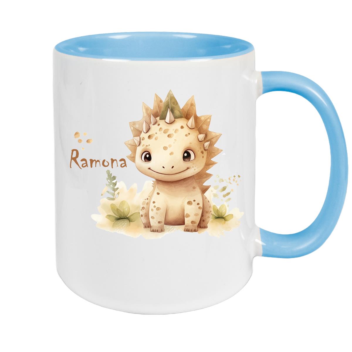 Tasse Wunschname Dino 2 Keramik Kinderbecher versch. Farben