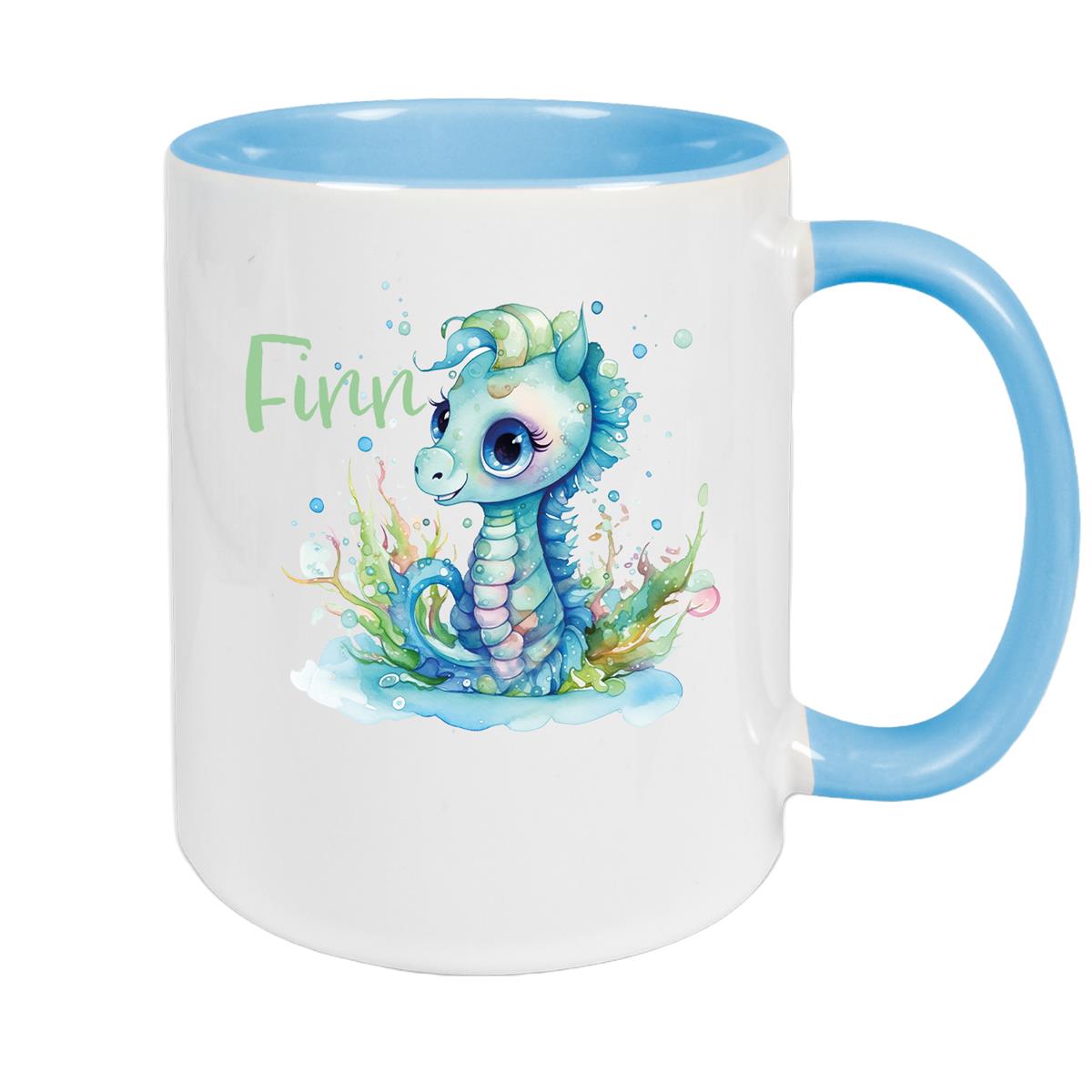 Produktinformationen "Tasse Wunschname Meerestiere-Seepferdchen 1 Keramik Kinderbecher versch. Farben"