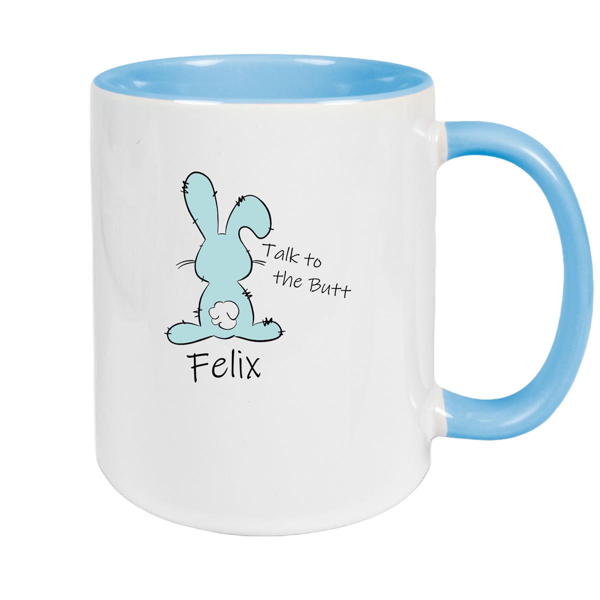 Produktinformationen "Tasse Ostern - Hase Talk to the Butt 2 Wunschnamen Keramik personalisiert versch. Farben"