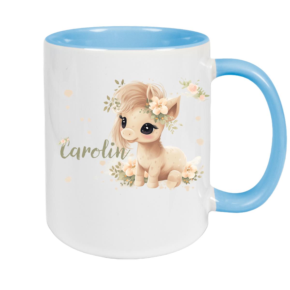 Tasse Pferd 5 Wunschname Keramik Kinderbecher personalisiert versch. Farben