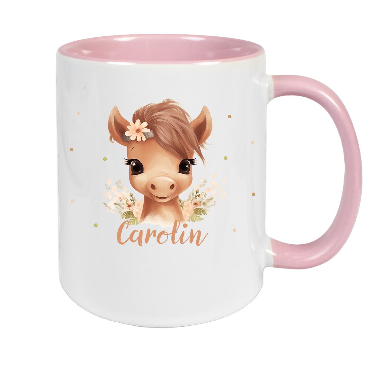 Tasse Pferd 6 Wunschname Keramik Kinderbecher personalisiert versch. Farben