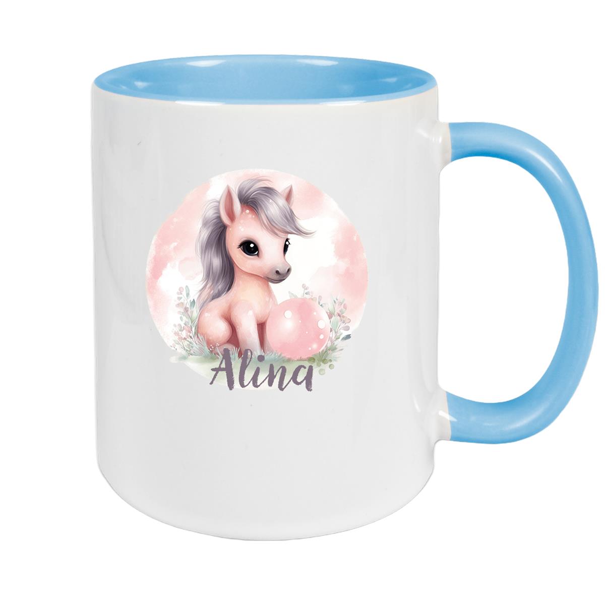 Tasse Pferd 7 Wunschname Keramik Kinderbecher personalisiert versch. Farben