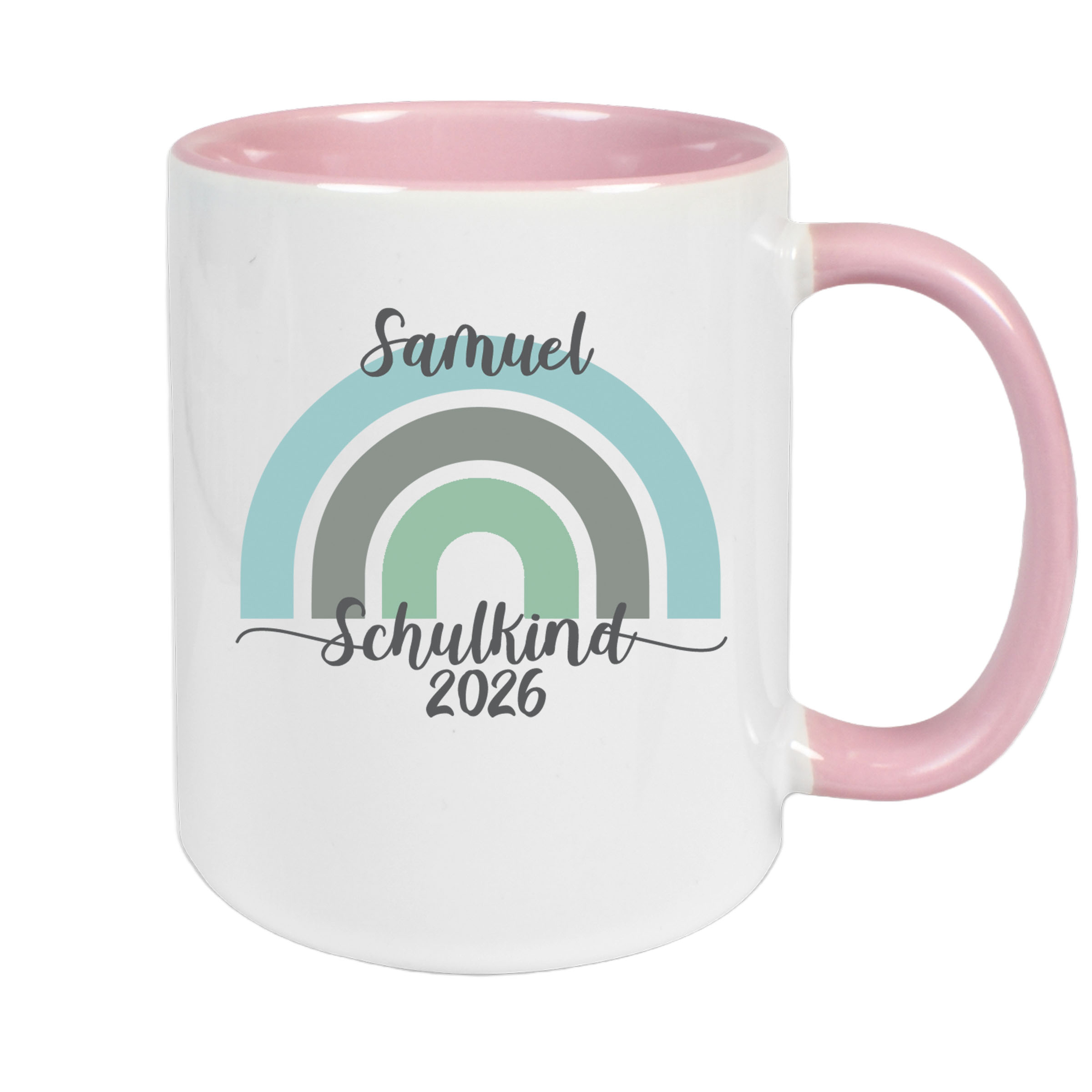 Tasse Schulkind 05 Wunschname Rainbow Keramik Kinderbecher Personalisiert versch. Farben