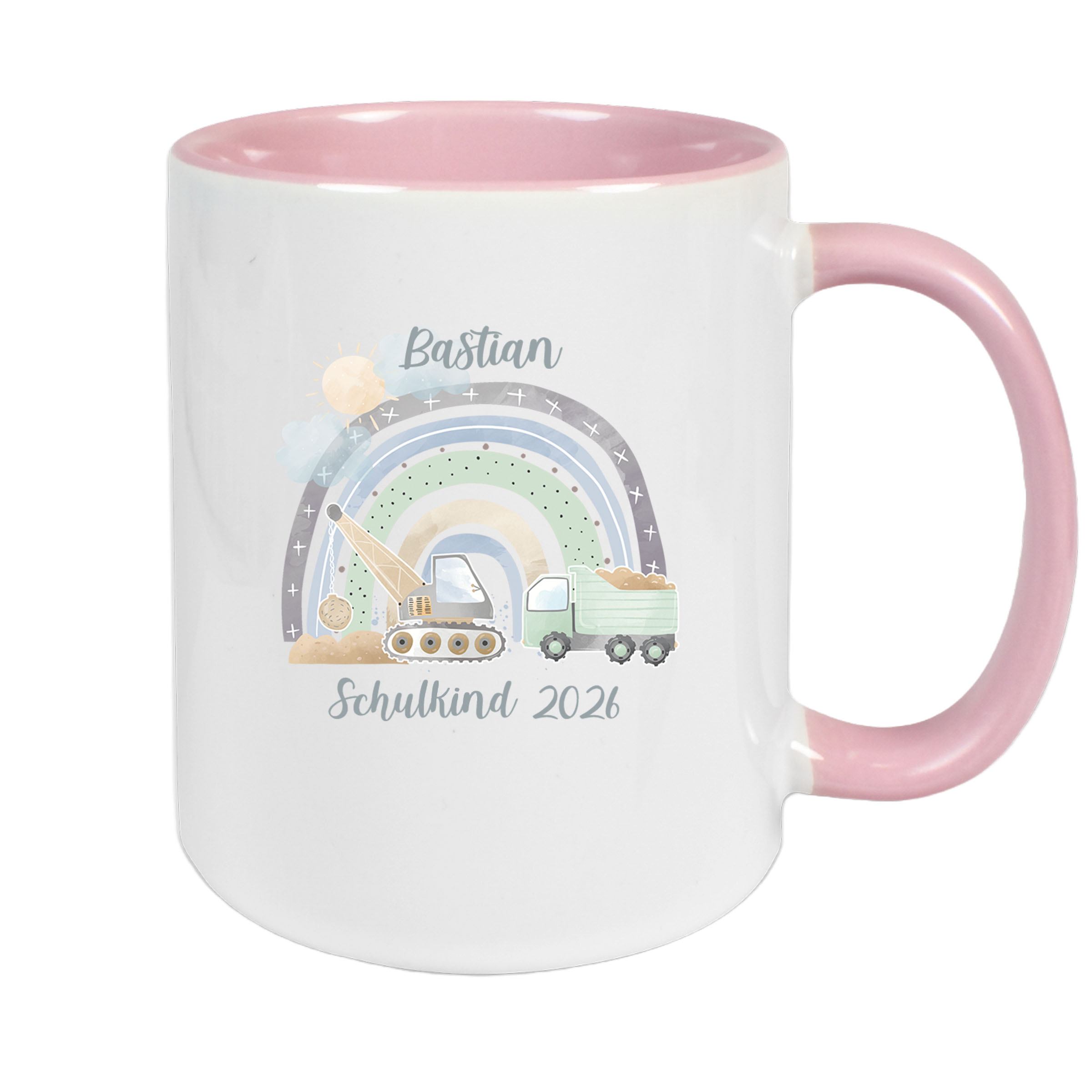 Personalisierte Tasse Schulkind #08 – Baustellenliebe trifft Regenbogenfreude