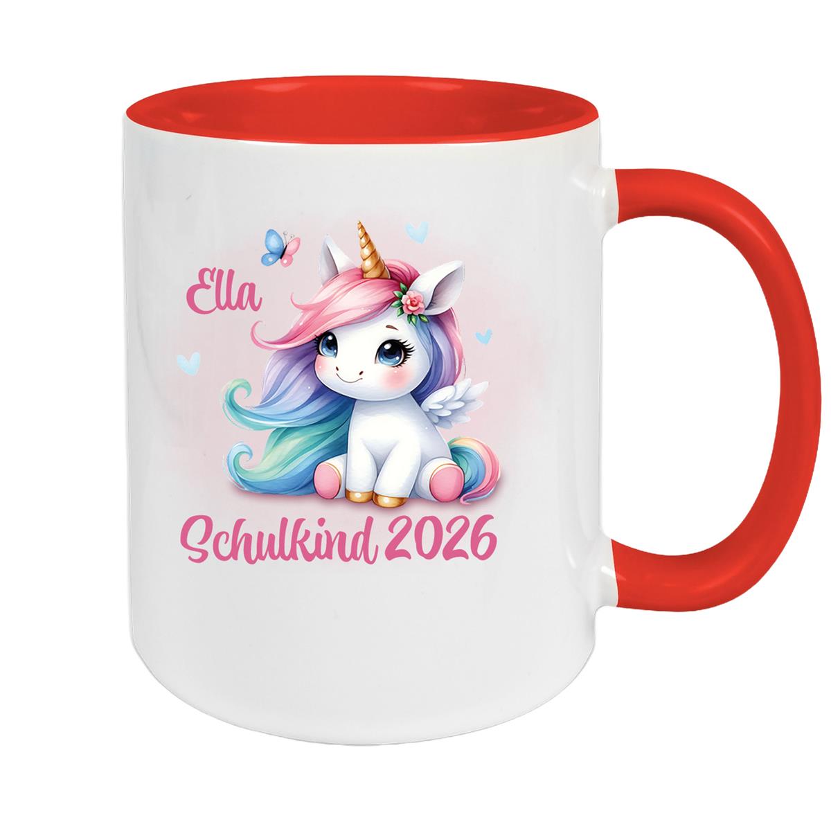 Produktinformationen "Tasse Schulkind 09 Wunschname Einhorn 2 Keramik Kinderbecher Personalisiert versch. Farben"