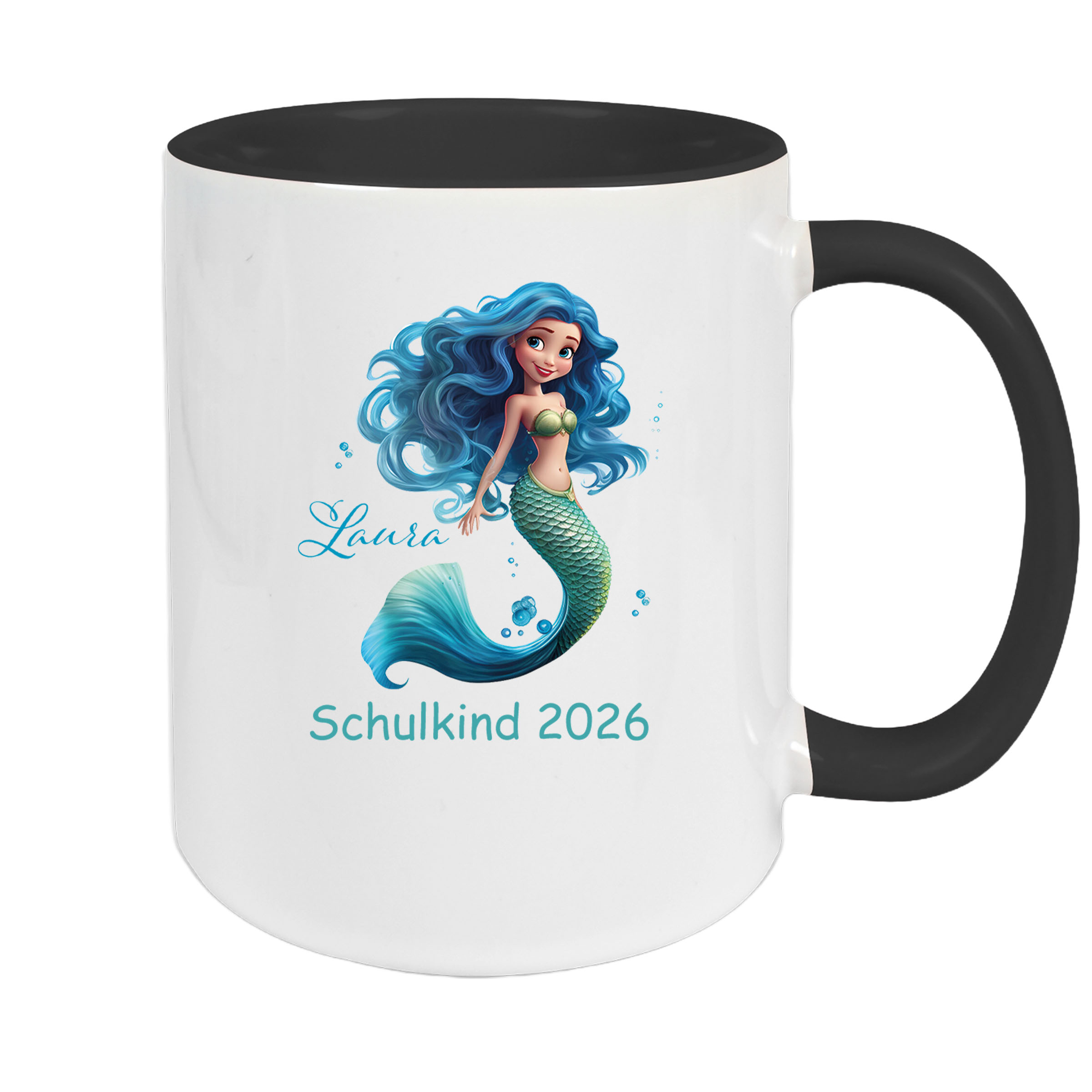 Tasse Schulkind 10 Wunschname Meerjungfrau 1 Keramik Kinderbecher Personalisiert versch. Farben