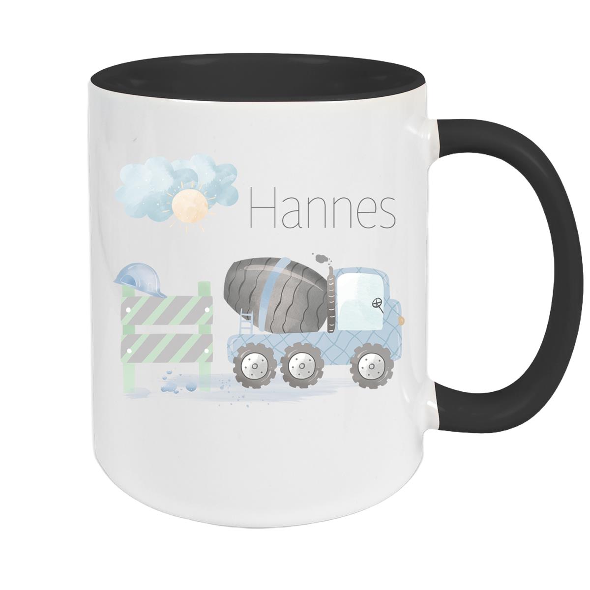Tasse Wunschname Baustelle Betonmischer 1 Keramik Kinderbecher versch. Farben