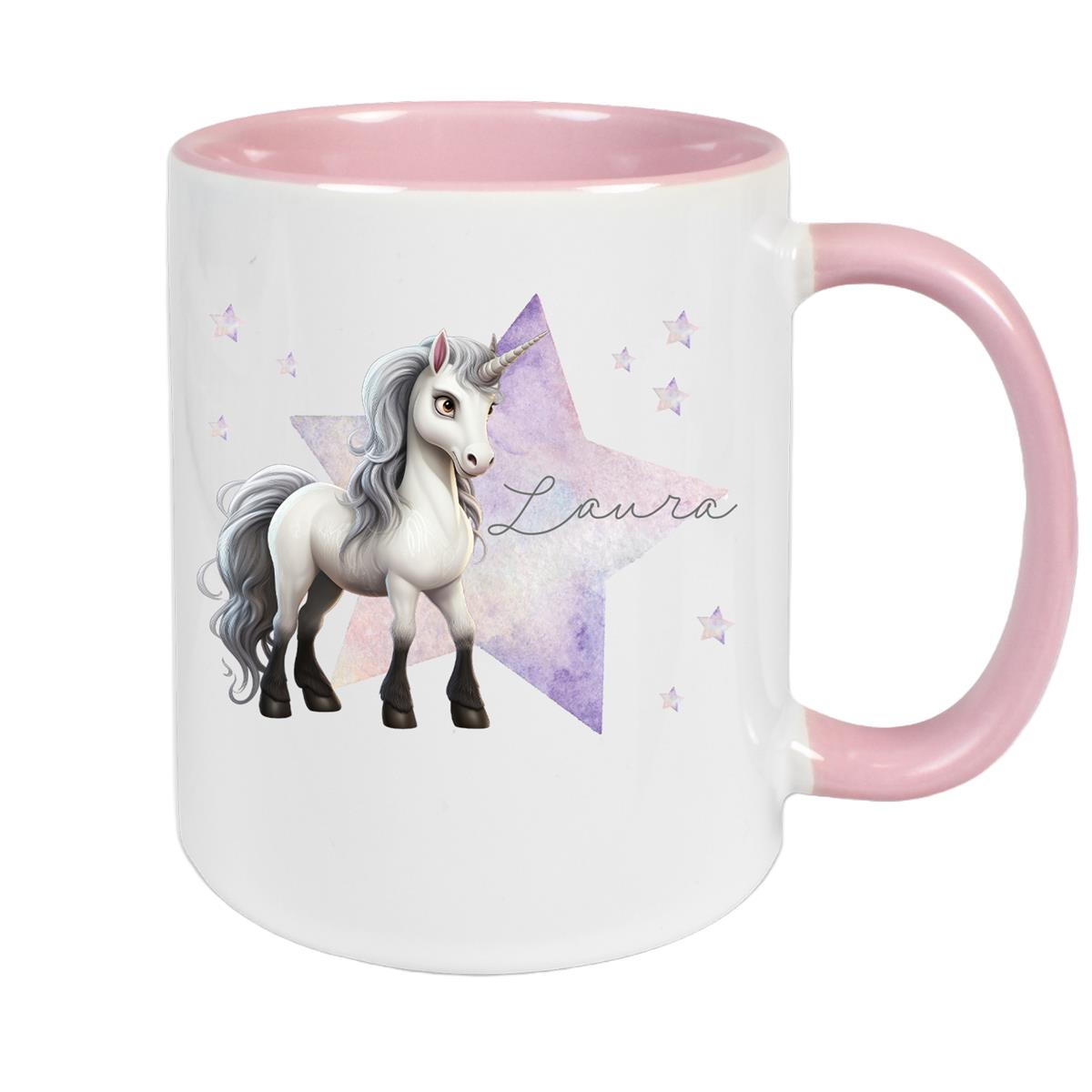 Tasse Wunschname Einhorn Stern 1 Keramik Kinderbecher versch. Farben