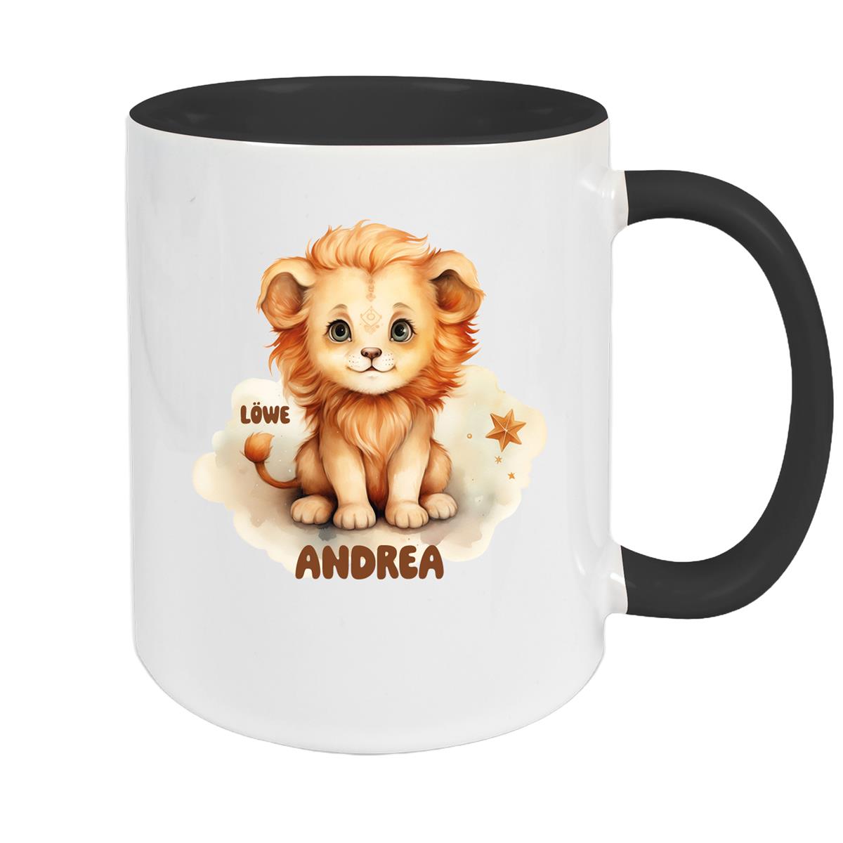 Diese stilvolle Keramiktasse mit dem Sternzeichen Löwe ist das perfekte Geschenk für alle, die im Zeichen des Löwen geboren sind. Mit Deinem Wunschnamen personalisiert und in verschiedenen Farben erhältlich, bringt sie majestätischen Glanz in den Alltag.
