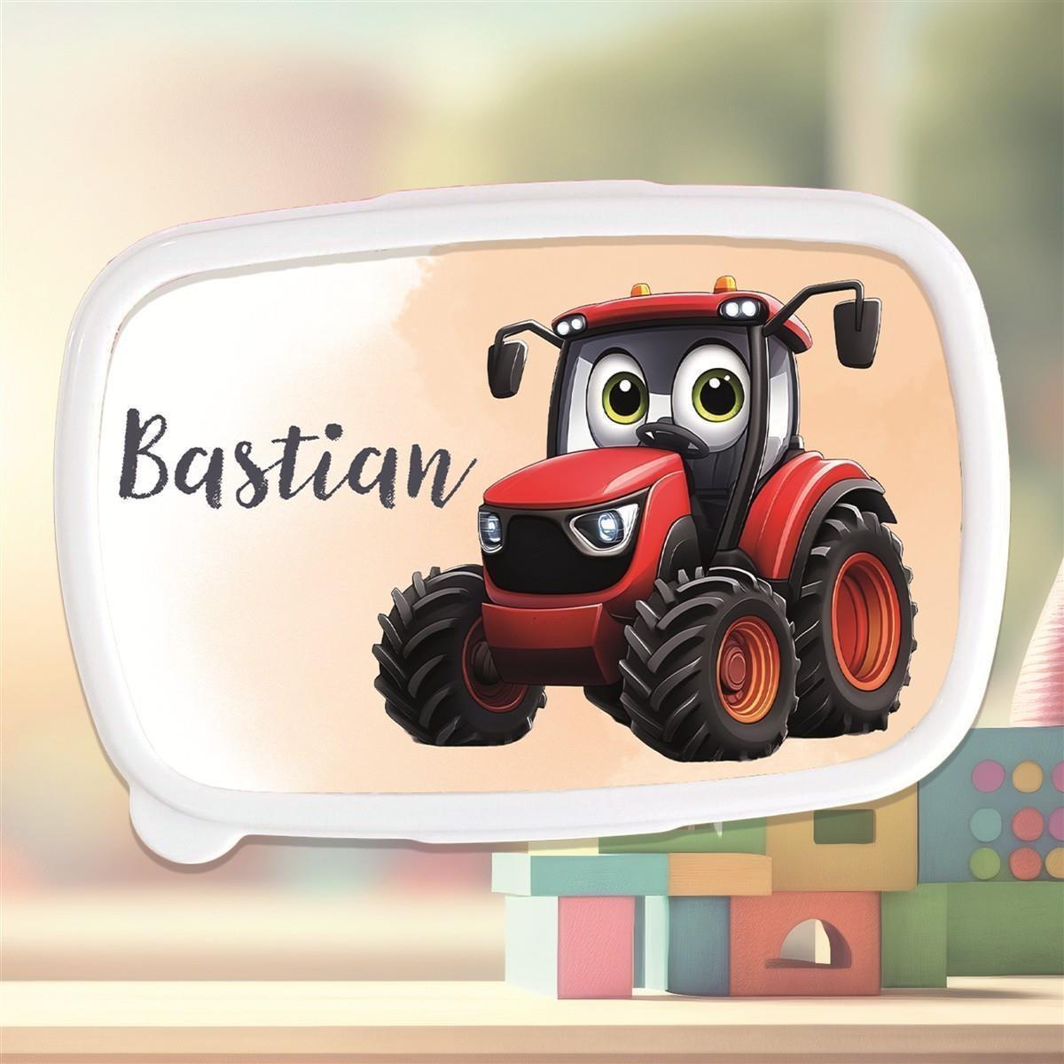 - Personalisierte Brotdose mit modernem Traktor-Motiv